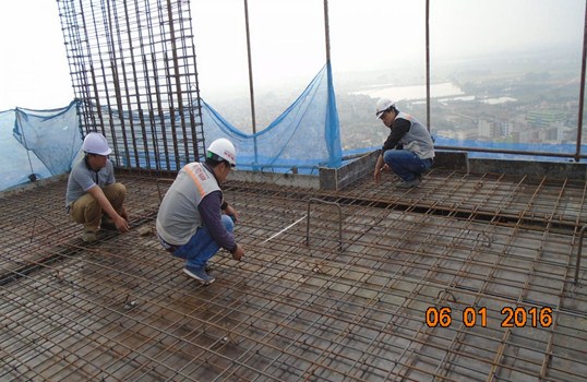 Trong quá trình đổ bê tông: Cốt thép cần phải đạt được các tiêu chí: chủng loại thép, vị trí, số lượng, chiều dài, nối, buộc thép phải theo thiết kế; làm sạch, đánh rỉ thép.